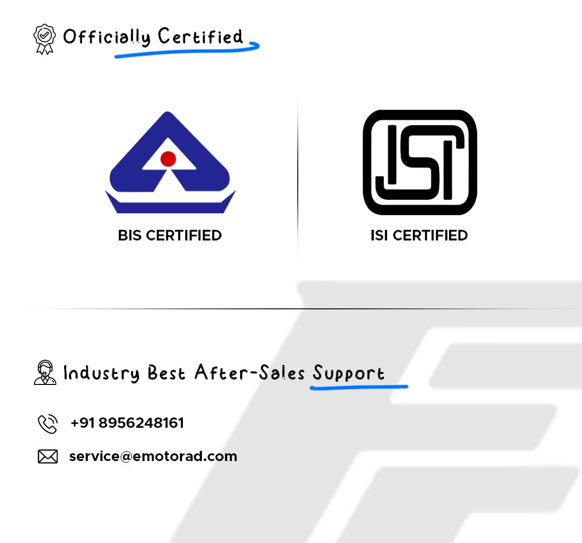 For General Enquiries contact on +918686050590 or contactus@emotorad.com. For Service/Assembly related queries contact on +918956248161 or service@emotorad.com