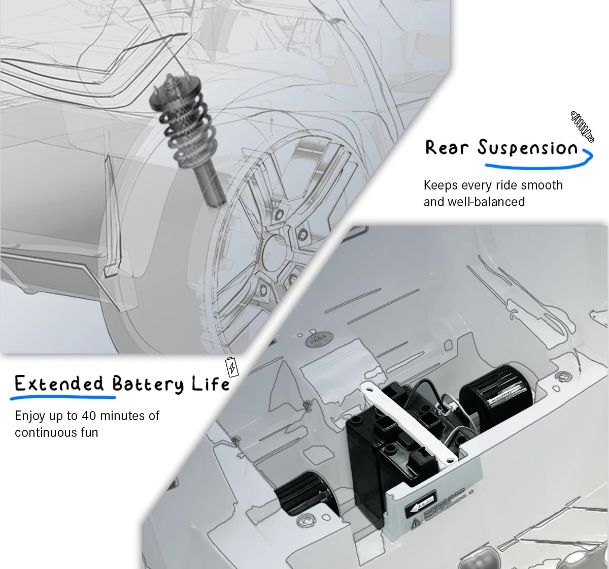6V 8Ah Battery: Enjoy up to 40 minutes of uninterrupted fun with the powerful battery, ensuring plenty of playtime before needing a recharge.