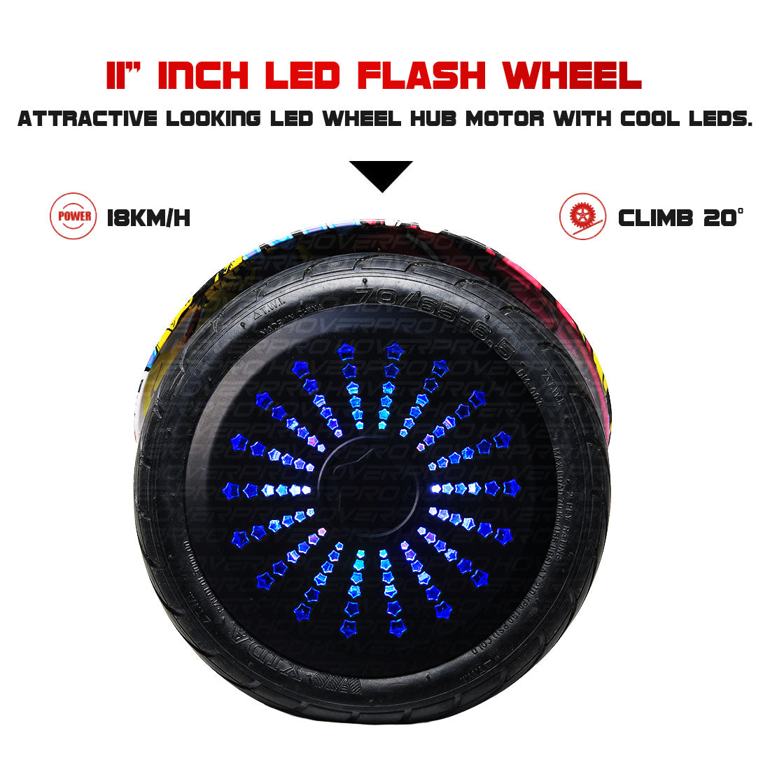 The H11 Hoverboard is the Ultimate Beast with large 11″ inflatable tires. It provides the smoothest ride over cracks and bumps. It offers almost 2X the power and can travel up to 18km/h  with the ability to climb slopes up to 30 degrees. Like all our models it also has built-in Bluetooth and LED lights.. When put head to head with even the most expensive Hoverboard brands, the H11  has been rated #1 in both safety & durability. The hypersensitive gyro-sensors with START-UP Balance 2.0 make it an excellent choice for smaller riders while enabling it to turn on a dime for full-sized riders (unlike other brands with a lag in responsiveness causing the rider to fall off). Zoom effortlessly indoors & out across all types of terrain and integrated LED lights & Bluetooth 4.0 so you can pump your music & light up the night as you ride!