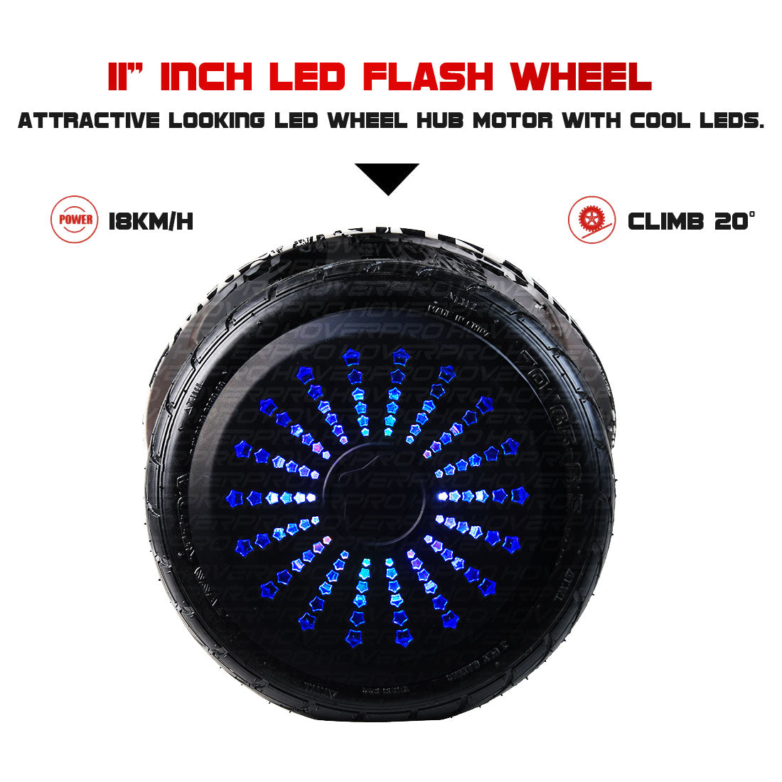 The H11 Hoverboard is the Ultimate Beast with large 11″ inflatable tires. It provides the smoothest ride over cracks and bumps. It offers almost 2X the power and can travel up to 18km/h with the ability to climb slopes up to 30 degrees. Like all our models it also has built-in Bluetooth and LED lights.. When put head to head with even the most expensive Hoverboard brands, the H11 has been rated #1 in both safety & durability. The hypersensitive gyro-sensors with START-UP Balance 2.0 make it an excellent choice for smaller riders while enabling it to turn on a dime for full-sized riders (unlike other brands with a lag in responsiveness causing the rider to fall off). Zoom effortlessly indoors & out across all types of terrain and integrated LED lights & Bluetooth 4.0 so you can pump your music & light up the night as you ride!