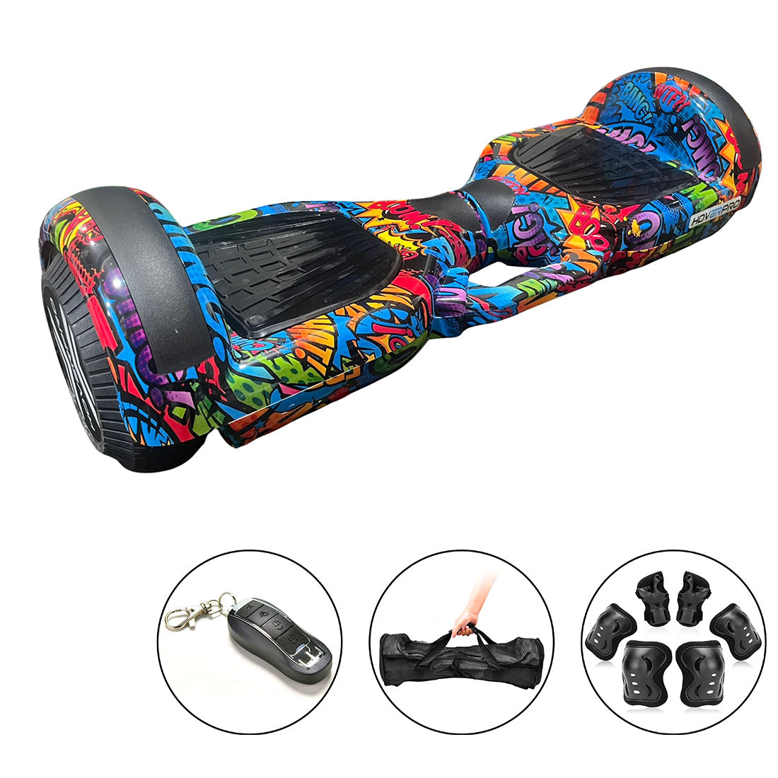 Our flagship model is a high-tech, hassle-free Hoverboard that offers the ultimate riding experience regardless of age or skill level. When put head to head with even the most expensive Hoverboard brands, the H6 has been rated #1 in both safety & durability. The hypersensitive gyro-sensors with START-UP Balance 2.0 make it an excellent choice for smaller riders while enabling it to turn on a dime for full-sized riders (unlike other brands with a lag in responsiveness causing the rider to fall off). Zoom effortlessly indoors & out across all types of flat terrain and integrated LED lights, Led Wheels & Bluetooth 4.0 so you can pump your music & light up the night as you ride!