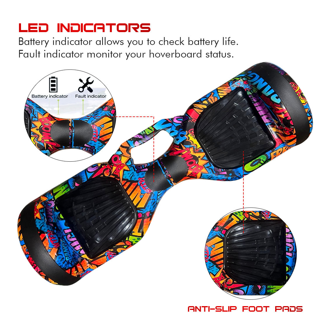 This user-friendly hoverboard allows for quick and easy mounting by automatically balancing upright when powered on and helps in maintaining the balance for all age groups and weight group people together with the use of a 5th Generation Intelligent control panel for a super smooth ride.