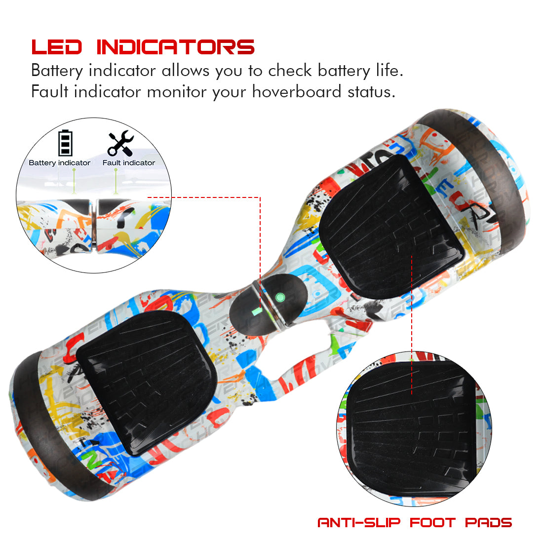 This user-friendly hoverboard allows for quick and easy mounting by automatically balancing upright when powered on and helps in maintaining the balance for all age groups and weight group people together with the use of a 5th Generation Intelligent control panel for a super smooth ride.
