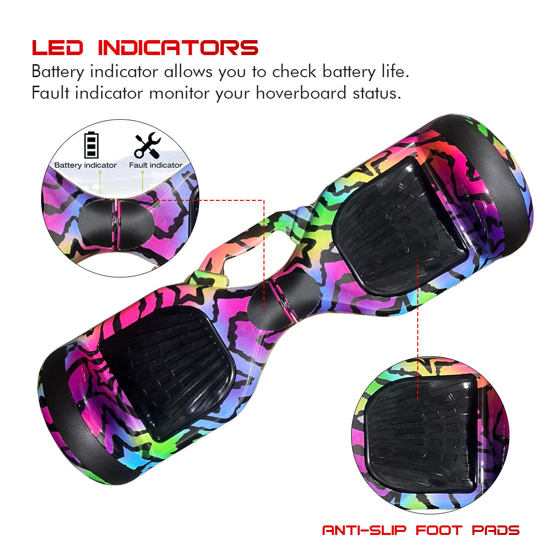 This user-friendly hoverboard allows for quick and easy mounting by automatically balancing upright when powered on and helps in maintaining the balance for all age groups and weight group people together with the use of a 5th Generation Intelligent control panel for a super smooth ride.