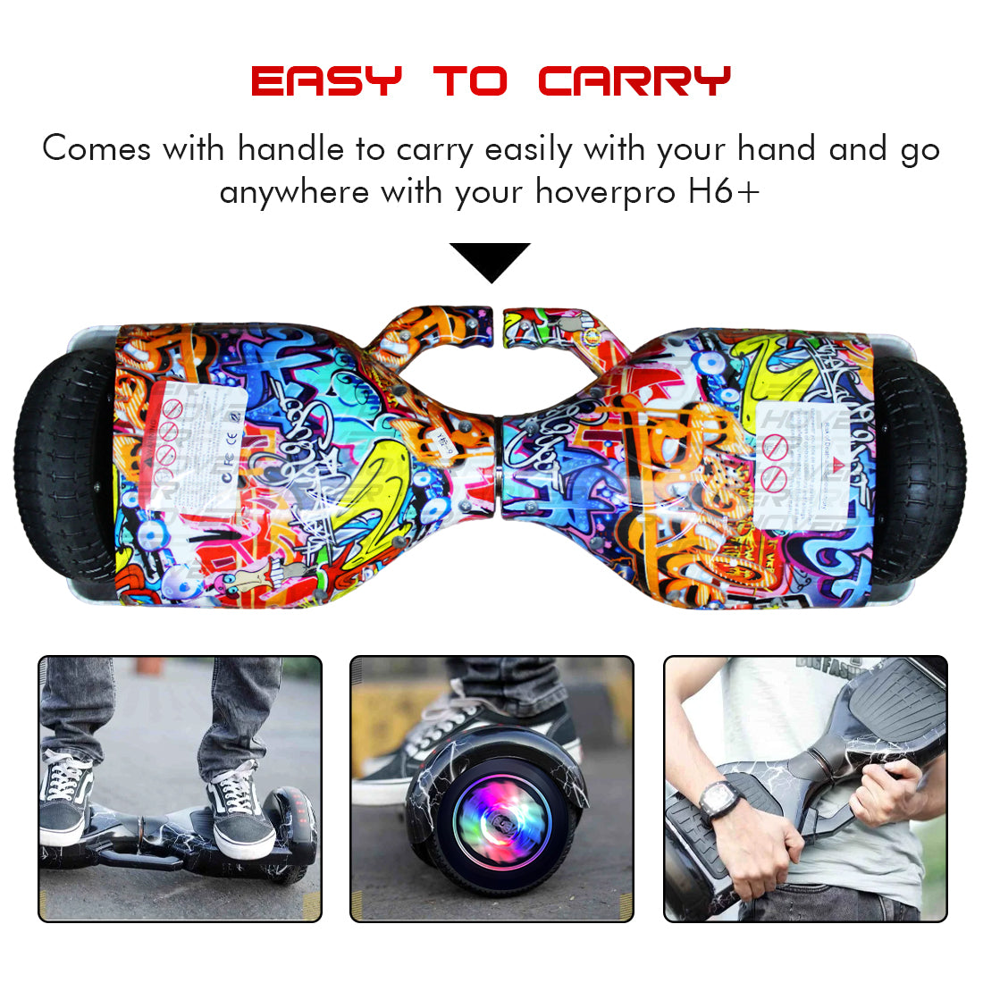 Our flagship model is a high-tech, hassle-free Hoverboard that offers the ultimate riding experience regardless of age or skill level. When put head to head with even the most expensive Hoverboard brands, the H6 has been rated #1 in both safety & durability. The hypersensitive gyro-sensors with START-UP Balance 2.0 make it an excellent choice for smaller riders while enabling it to turn on a dime for full-sized riders (unlike other brands with a lag in responsiveness causing the rider to fall off). Zoom effortlessly indoors & out across all types of flat terrain and integrated LED lights, Led Wheels & Bluetooth 4.0 so you can pump your music & light up the night as you ride!