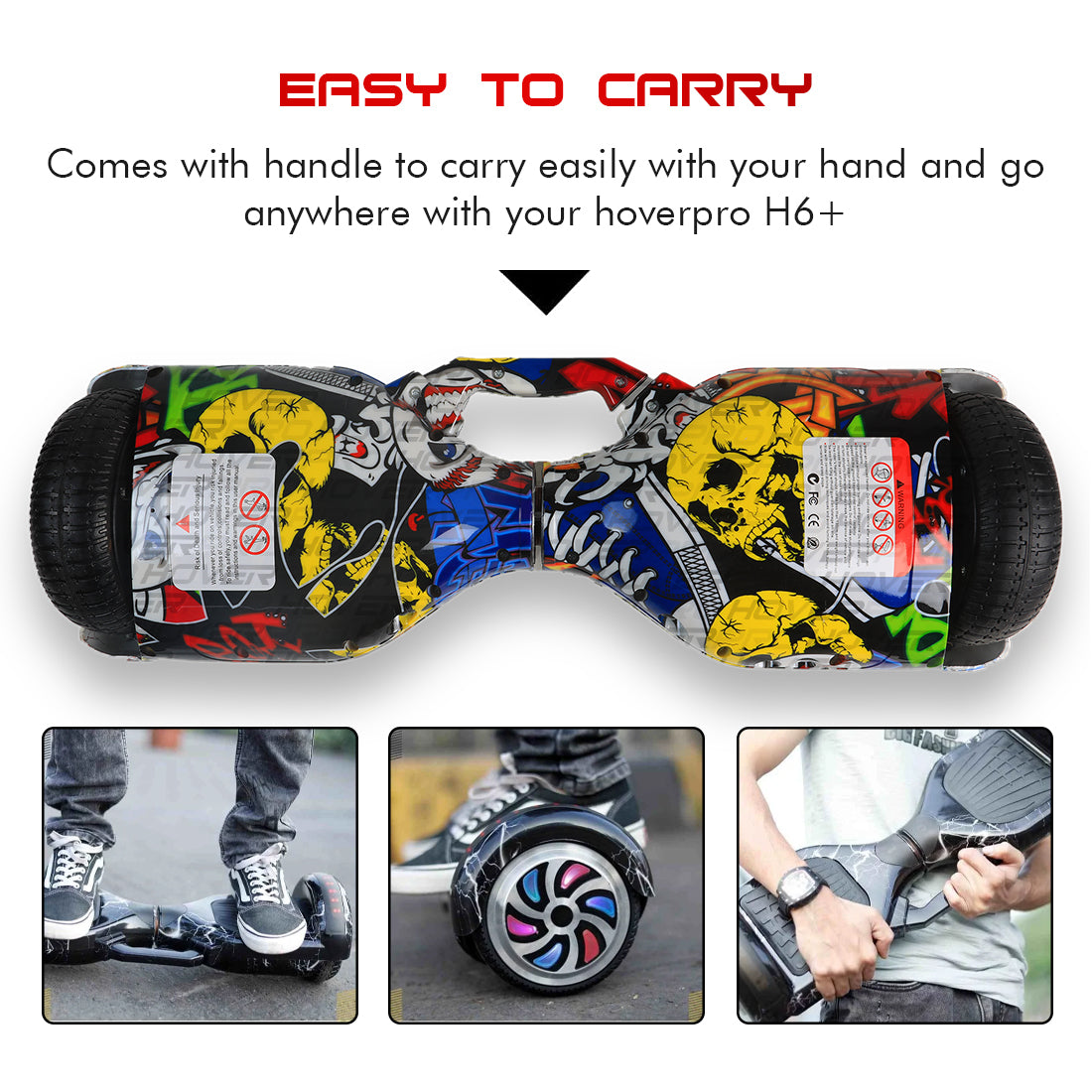 Our flagship model is a high-tech, hassle-free Hoverboard that offers the ultimate riding experience regardless of age or skill level. When put head to head with even the most expensive Hoverboard brands, the H6 has been rated #1 in both safety & durability. The hypersensitive gyro-sensors with START-UP Balance 2.0 make it an excellent choice for smaller riders while enabling it to turn on a dime for full-sized riders (unlike other brands with a lag in responsiveness causing the rider to fall off). Zoom effortlessly indoors & out across all types of flat terrain and integrated LED lights, Led Wheels & Bluetooth 4.0 so you can pump your music & light up the night as you ride!