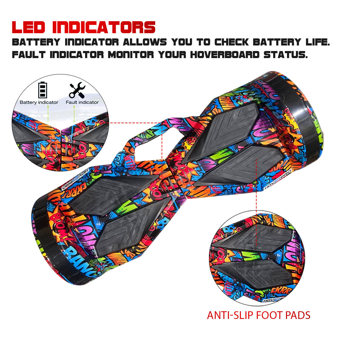 This user-friendly hoverboard allows for quick and easy mounting by automatically balancing upright when powered on and helps in maintaining the balance for all age groups and weight group people together with the use of a 5th Generation Intelligent control panel for a super smooth ride.