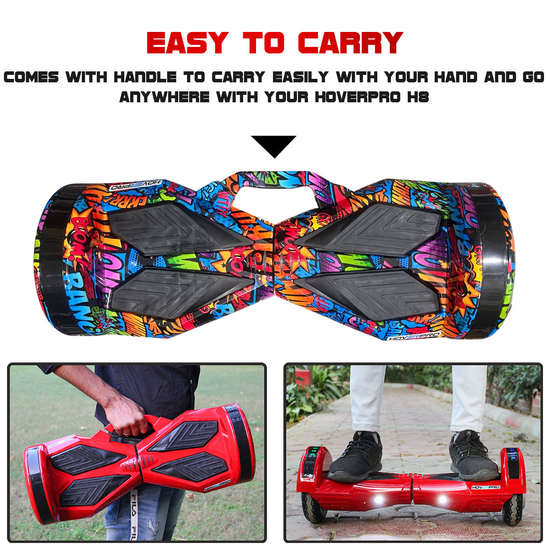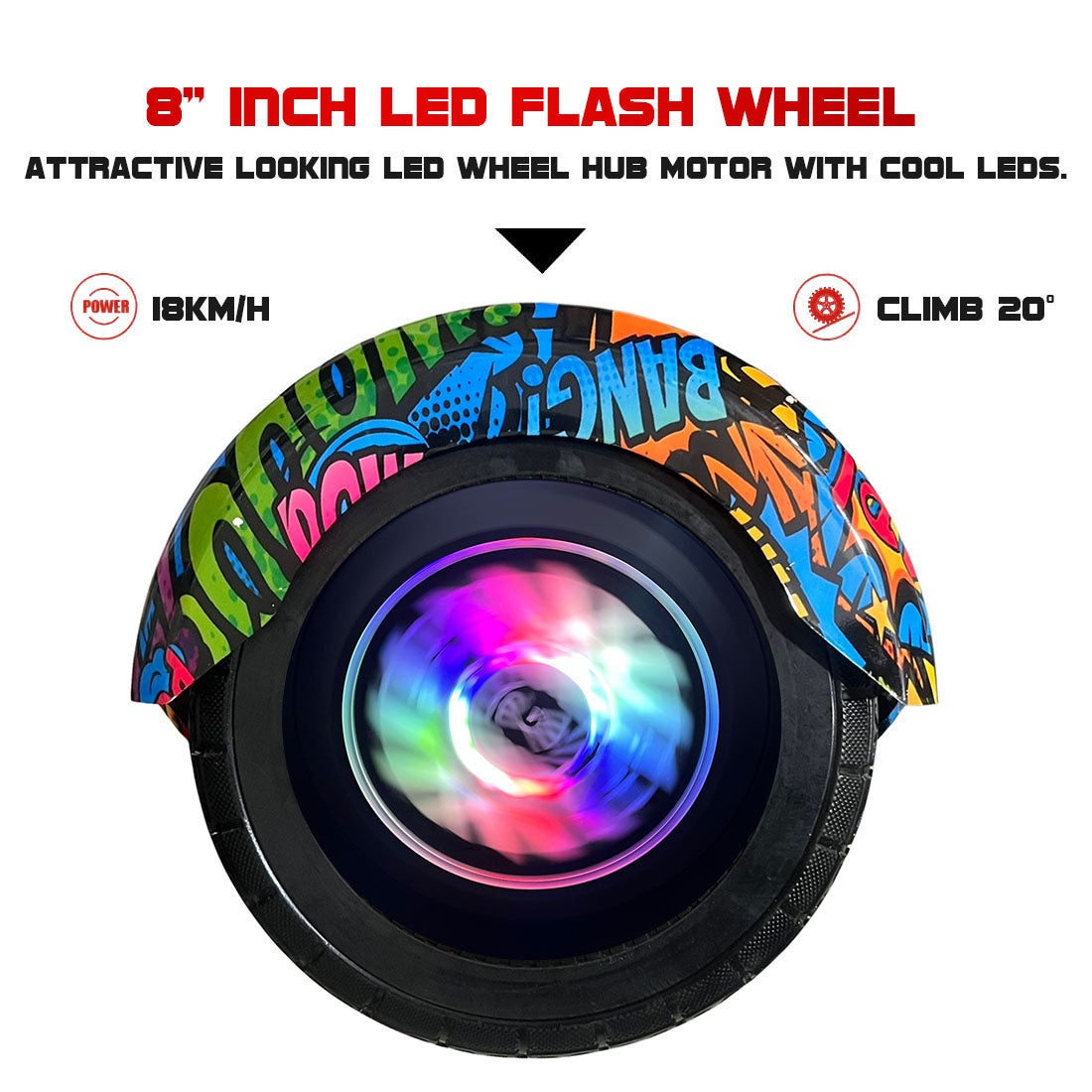 Our H8 Hoverboard performs better outdoors over rougher terrain due to the larger 8″ wheel diameter and more powerful motors. Like all our models it also has built-in Bluetooth and LED lights.. When put head to head with even the most expensive Hoverboard brands, the H8 has been rated #1 in both safety durability. The hypersensitive gyro-sensors with START-UP Balance 2.0 make it an excellent choice for smaller riders while enabling it to turn on a dime for full-sized riders (unlike other brands with a lag in responsiveness causing the rider to fall off). Zoom effortlessly indoors out across all types of flat terrain and integrated LED lights, Led Wheels Bluetooth 4.0 so you can pump your music light up the night as you ride!