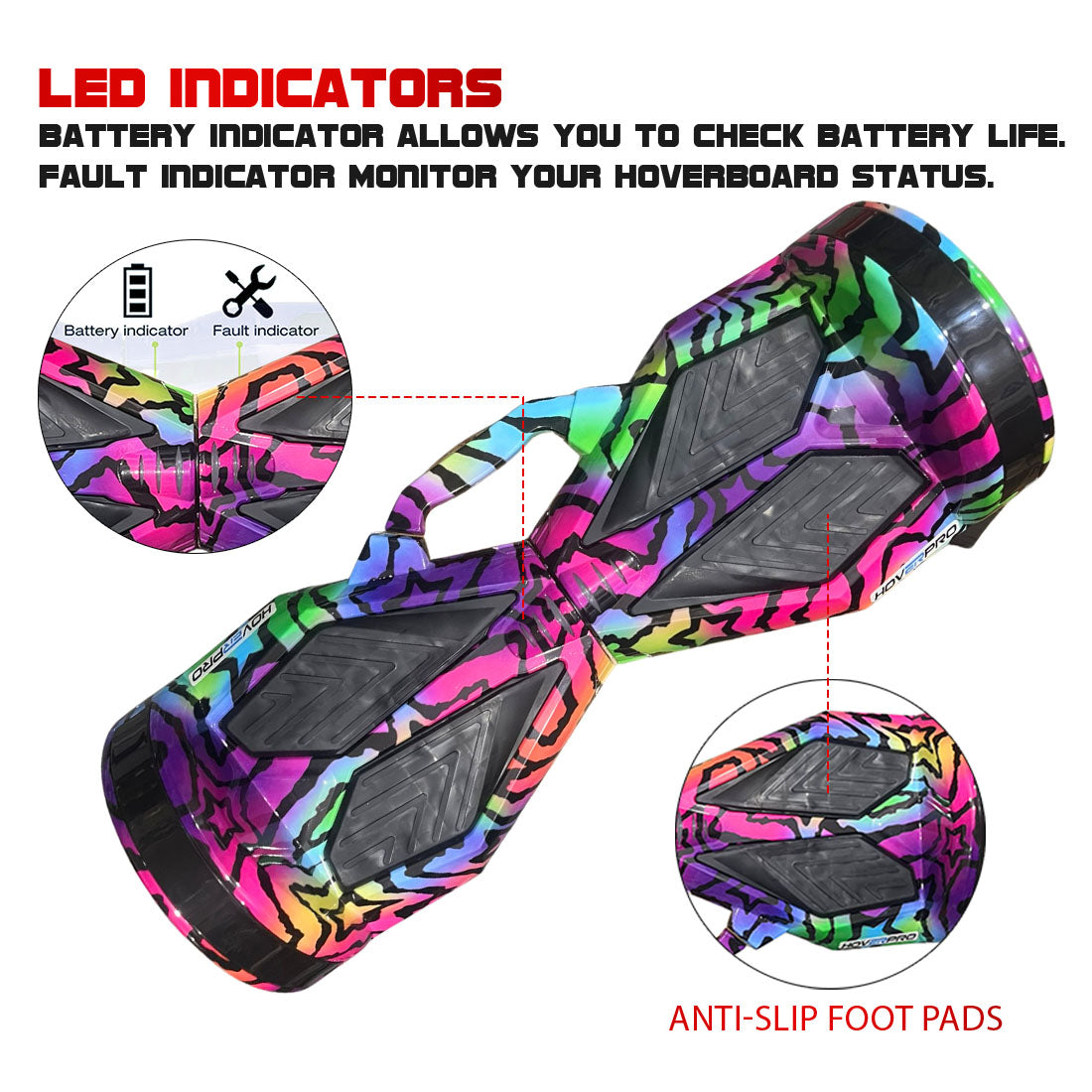 This user-friendly hoverboard allows for quick and easy mounting by automatically balancing upright when powered on and helps in maintaining the balance for all age groups and weight group people together with the use of a 5th Generation Intelligent control panel for a super smooth ride.