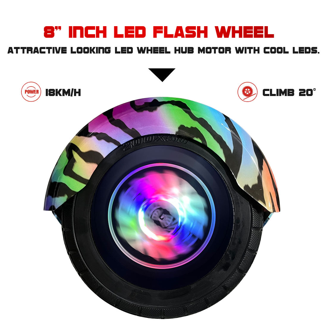 Attractive looking Latest LED Wheels Technology, has cool different colors of LED Lights installed in the Hub Motor which becomes a point of attraction for other people watching you glide through roads.