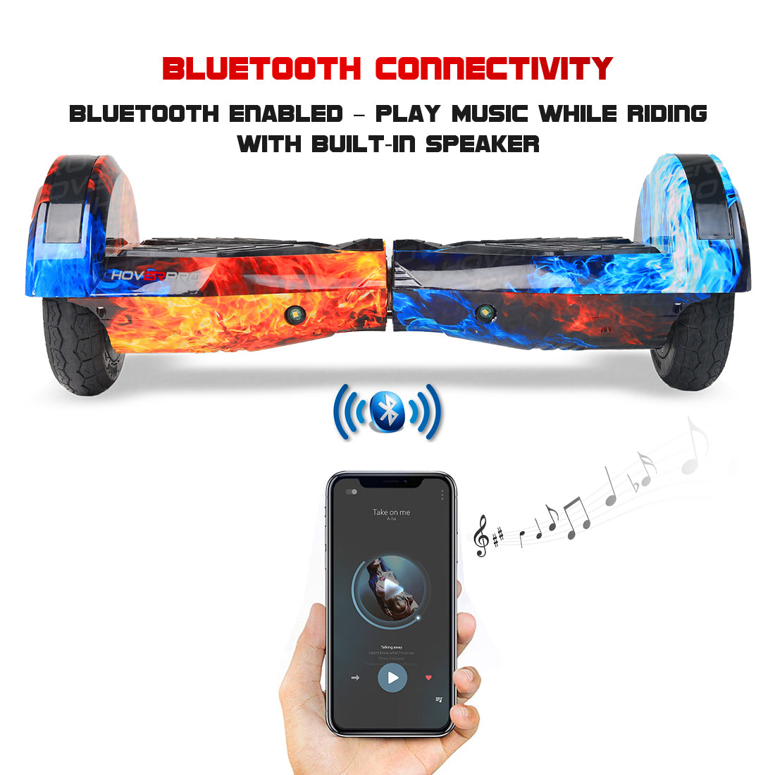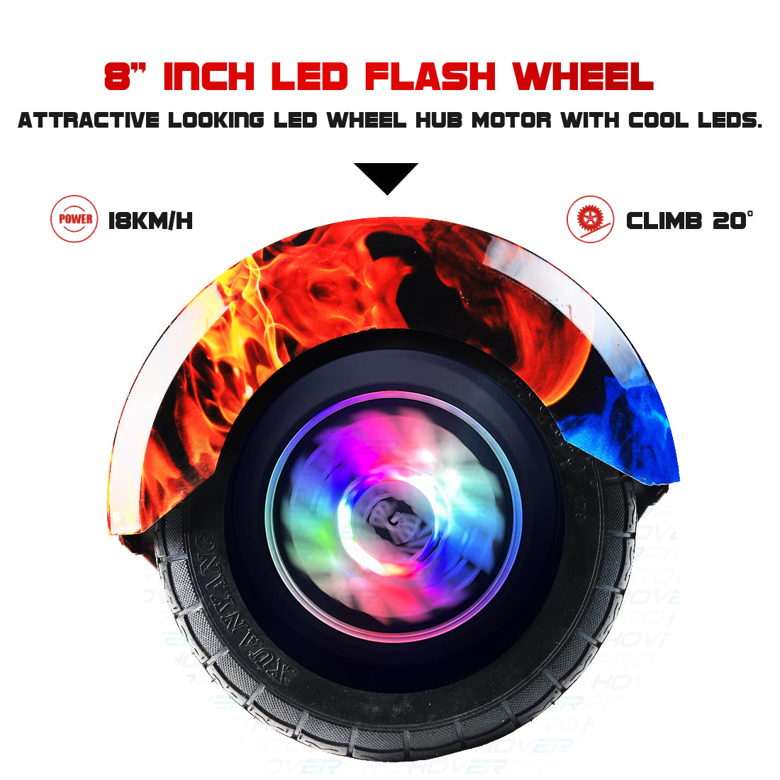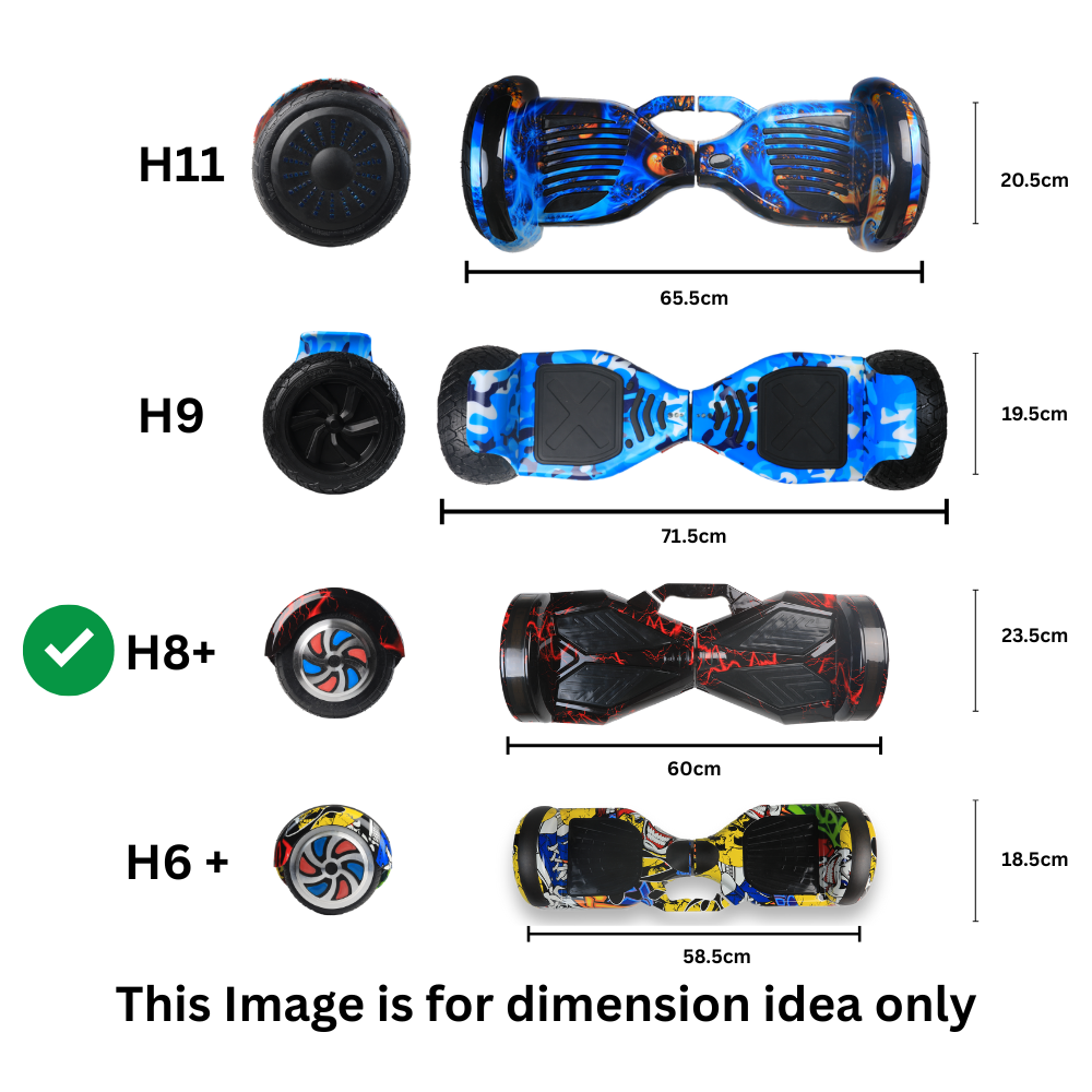Our H8 Hoverboard performs better outdoors over rougher terrain due to the larger 8″ wheel diameter and more powerful motors. Like all our models it also has built-in Bluetooth and LED lights.. When put head to head with even the most expensive Hoverboard brands, the H8 has been rated #1 in both safety durability. The hypersensitive gyro-sensors with START-UP Balance 2.0 make it an excellent choice for smaller riders while enabling it to turn on a dime for full-sized riders (unlike other brands with a lag in responsiveness causing the rider to fall off). Zoom effortlessly indoors out across all types of flat terrain and integrated LED lights, Led Wheels Bluetooth 4.0 so you can pump your music light up the night as you ride!