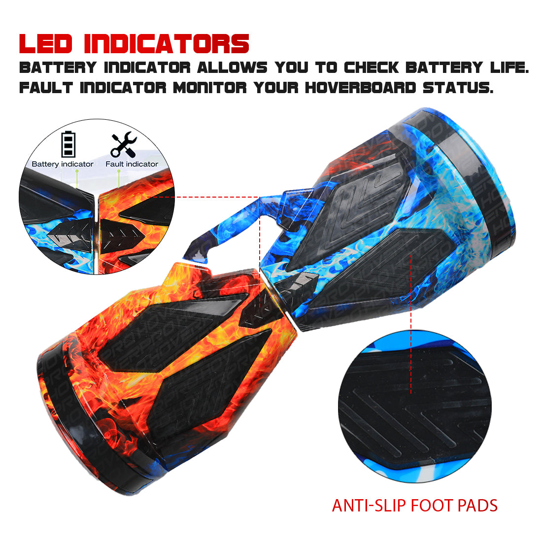 This user-friendly hoverboard allows for quick and easy mounting by automatically balancing upright when powered on and helps in maintaining the balance for all age groups and weight group people together with the use of a 5th Generation Intelligent control panel for a super smooth ride.