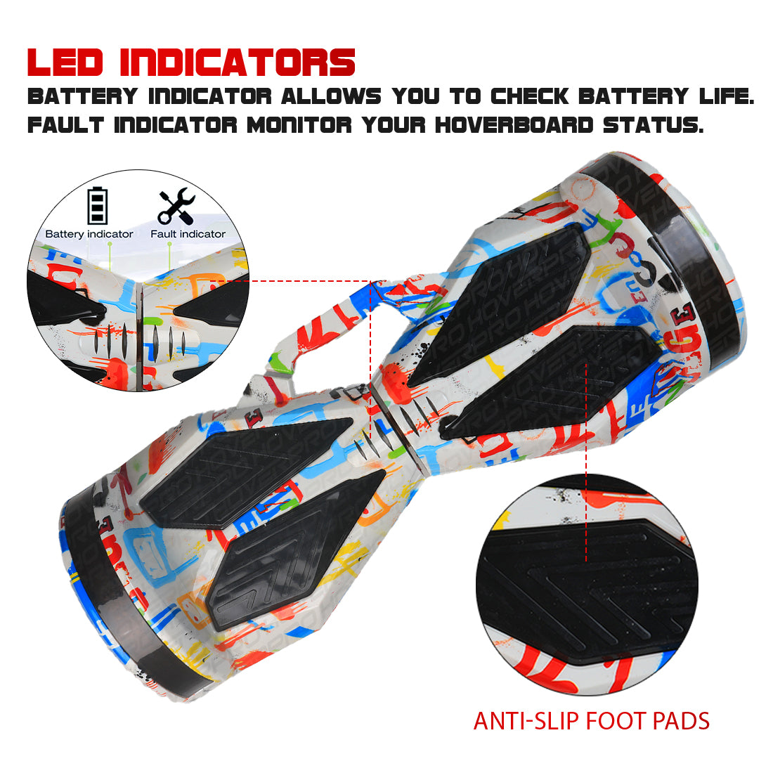 This user-friendly hoverboard allows for quick and easy mounting by automatically balancing upright when powered on and helps in maintaining the balance for all age groups and weight group people together with the use of a 5th Generation Intelligent control panel for a super smooth ride.