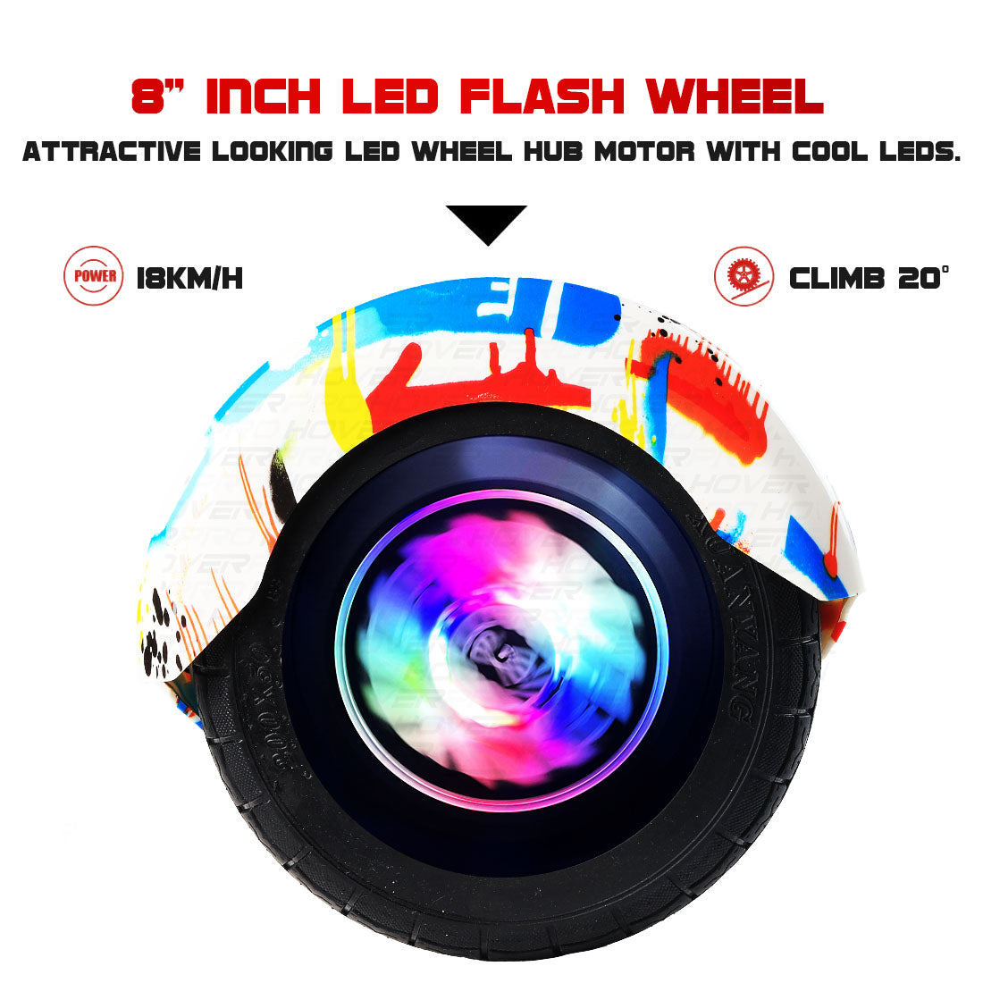 Our H8 Hoverboard performs better outdoors over rougher terrain due to the larger 8″ wheel diameter and more powerful motors. Like all our models it also has built-in Bluetooth and LED lights.. When put head to head with even the most expensive Hoverboard brands, the H8 has been rated #1 in both safety durability. The hypersensitive gyro-sensors with START-UP Balance 2.0 make it an excellent choice for smaller riders while enabling it to turn on a dime for full-sized riders (unlike other brands with a lag in responsiveness causing the rider to fall off). Zoom effortlessly indoors out across all types of flat terrain and integrated LED lights, Led Wheels Bluetooth 4.0 so you can pump your music light up the night as you ride!
