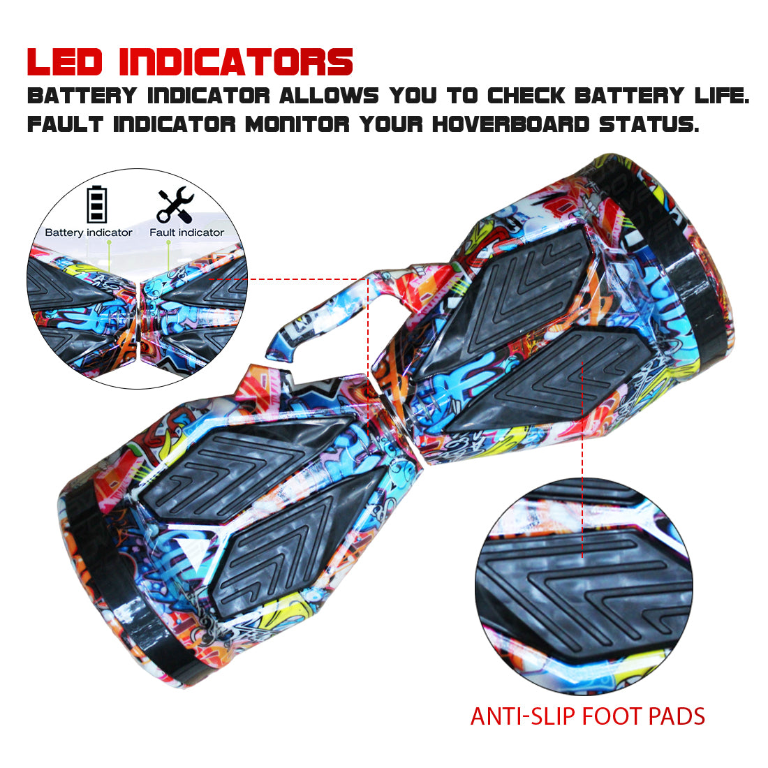 This user-friendly hoverboard allows for quick and easy mounting by automatically balancing upright when powered on and helps in maintaining the balance for all age groups and weight group people together with the use of a 5th Generation Intelligent control panel for a super smooth ride.