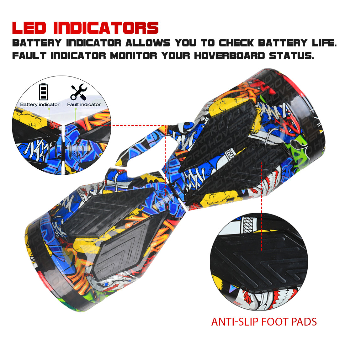 This user-friendly hoverboard allows for quick and easy mounting by automatically balancing upright when powered on and helps in maintaining the balance for all age groups and weight group people together with the use of a 5th Generation Intelligent control panel for a super smooth ride.