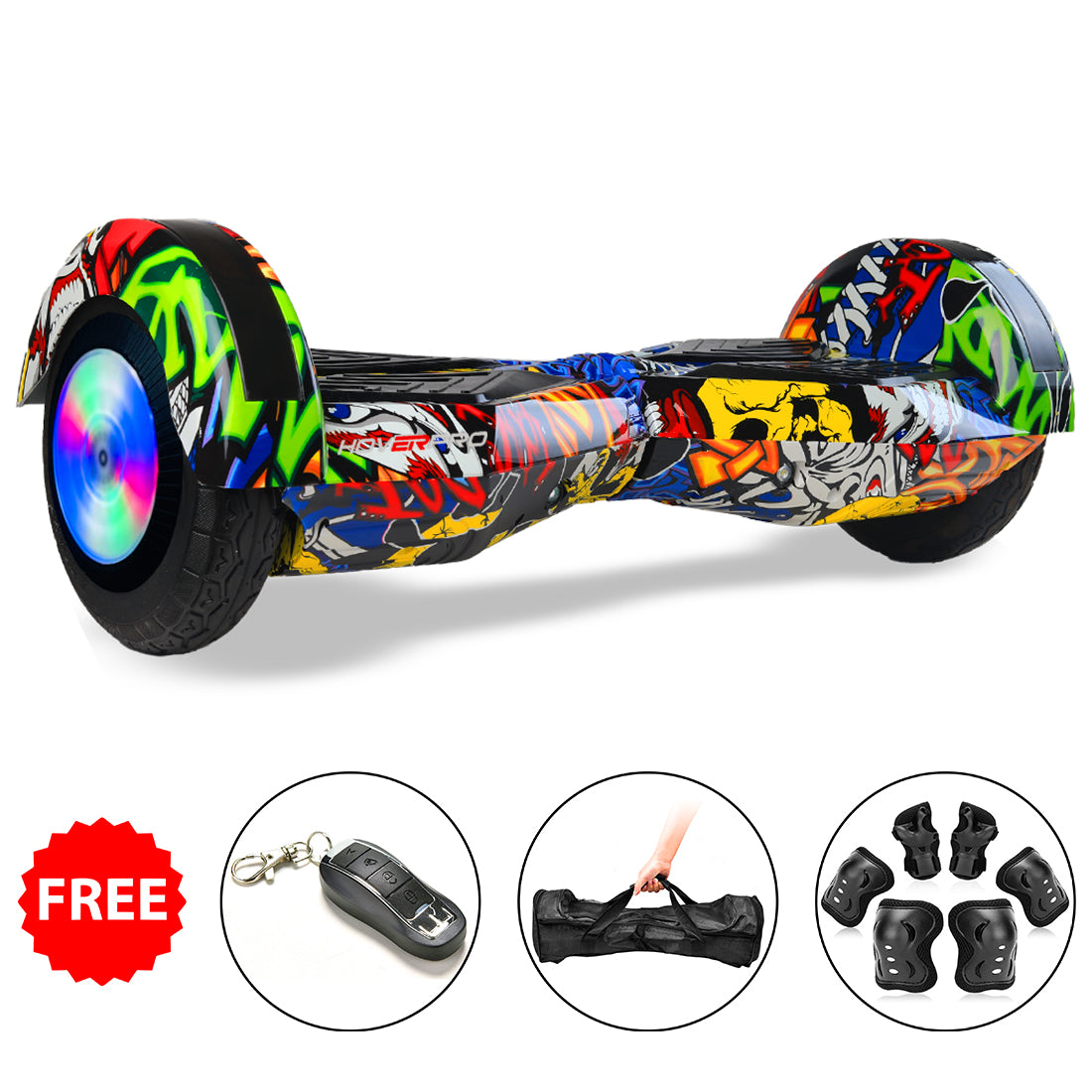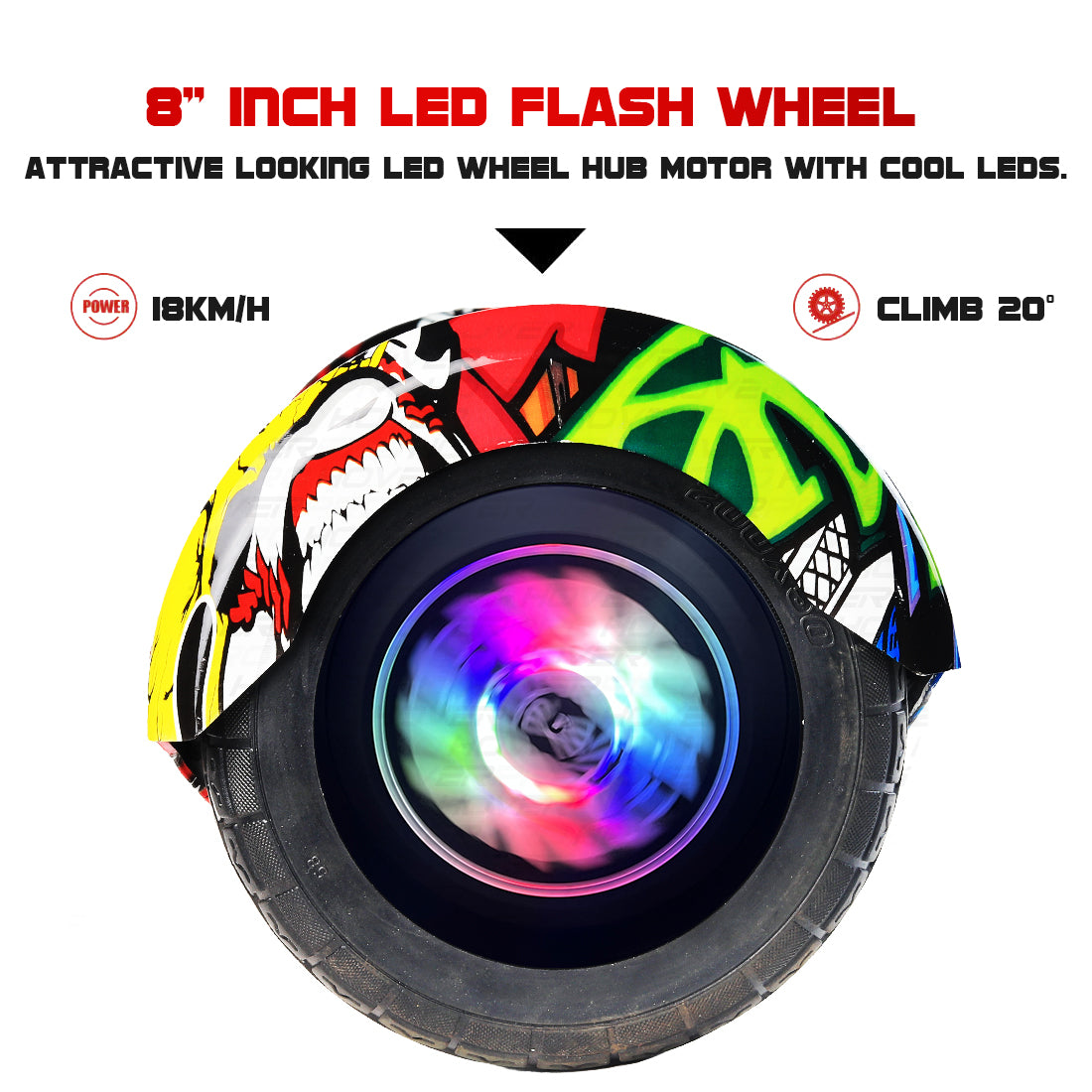 Our H8 Hoverboard performs better outdoors over rougher terrain due to the larger 8″ wheel diameter and more powerful motors. Like all our models it also has built-in Bluetooth and LED lights.. When put head to head with even the most expensive Hoverboard brands, the H8 has been rated #1 in both safety durability. The hypersensitive gyro-sensors with START-UP Balance 2.0 make it an excellent choice for smaller riders while enabling it to turn on a dime for full-sized riders (unlike other brands with a lag in responsiveness causing the rider to fall off). Zoom effortlessly indoors out across all types of flat terrain and integrated LED lights, Led Wheels Bluetooth 4.0 so you can pump your music light up the night as you ride!